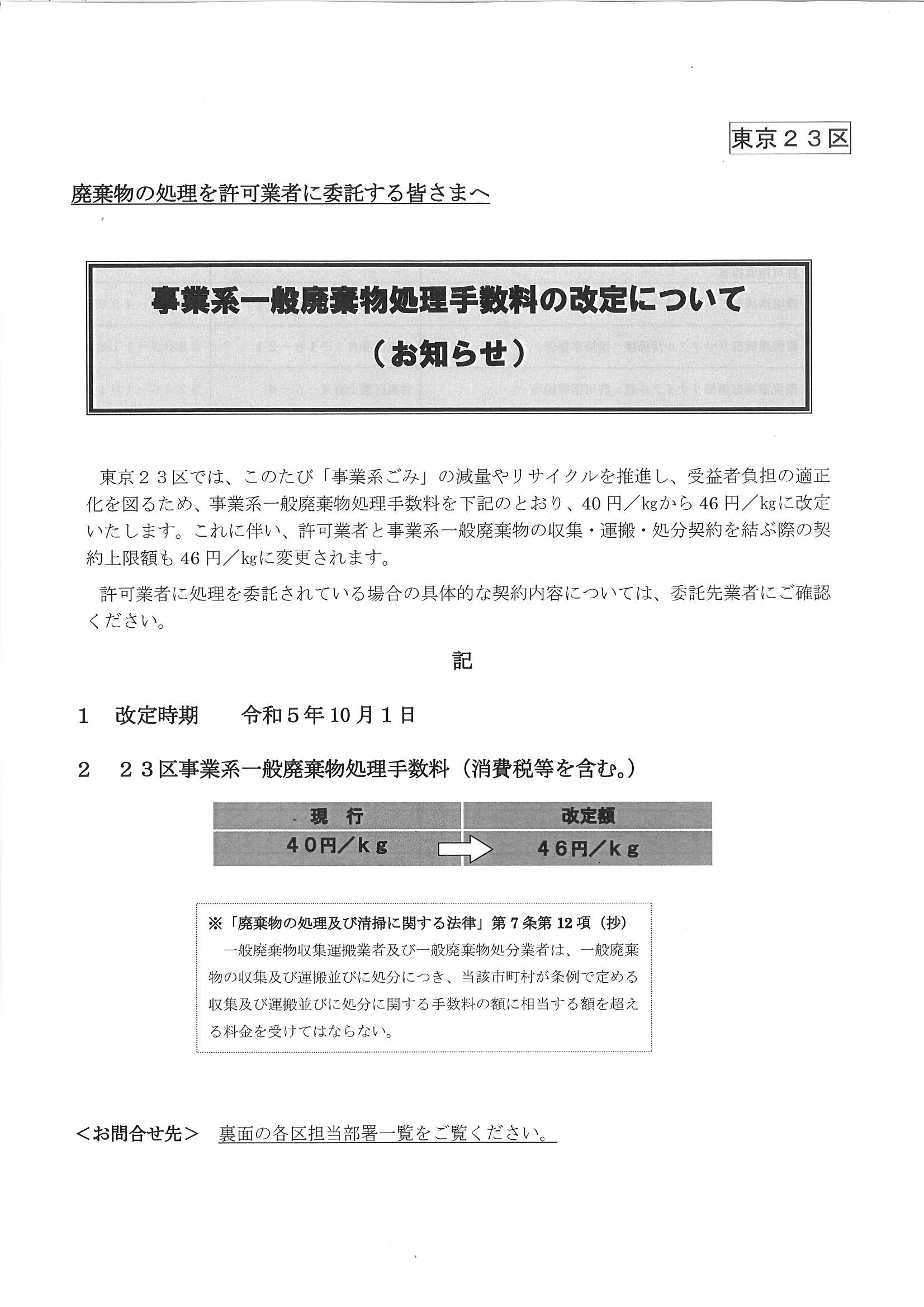 処分費改定の案内がございました。
